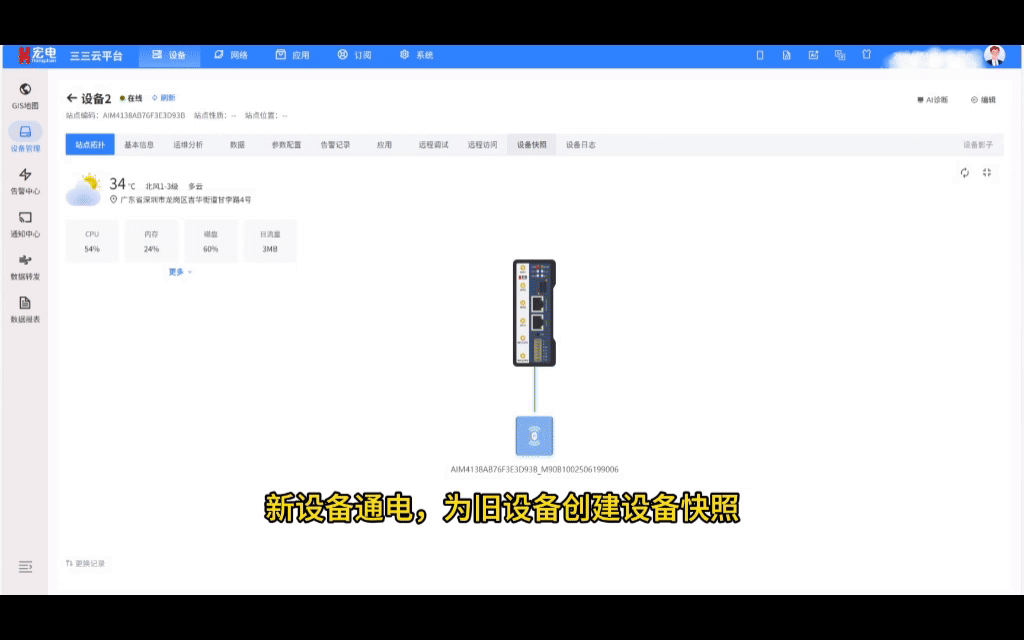 一键换机:支持用户无感的设备更换,用户只需要在平台上指定新机和旧机,平台即可自动将旧机配置迁移到新机,无需技术人员到现场进行组装、配置、调试,设备通电即自动连接平台。